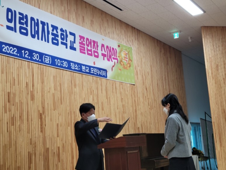제 58회 의령여자중학교 졸업장 수여식을 다음과 같이 실시하였습니다.
